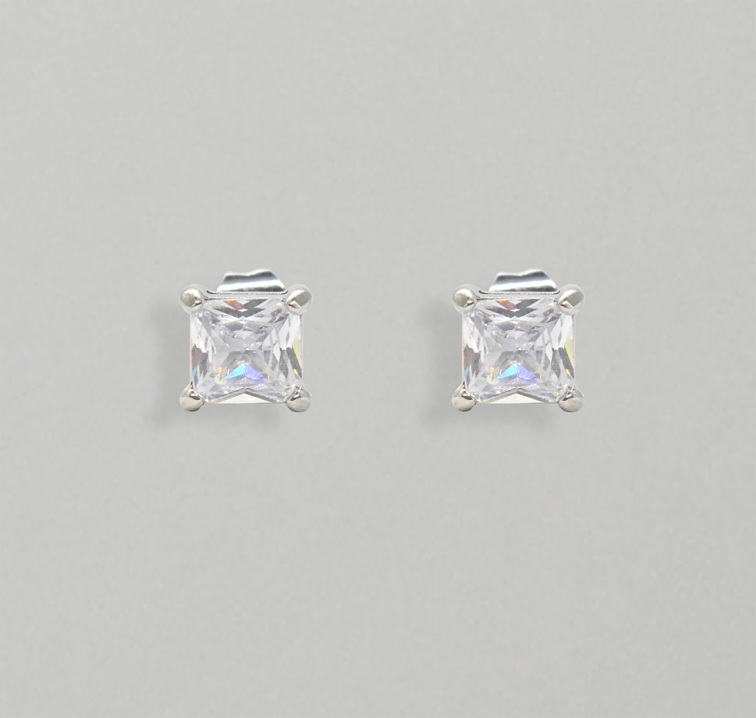 SILVER CZ DIAMOND STUD EARRINGS - 4MM